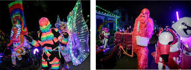 She said we would be fine if we stayed on the main thoroughfare, so off we went in our high-heeled boots that were made for walking! We staked out a spot by Cafe du Monde on Decatur Street, and after about 10 minutes of people watching, here comes the boom boom! Primarily a walking parade, the Intergalactic Krewe of Chewbacchus is a science fiction–themed Mardi Gras krewe that also features fantasy and horror groups, among other fandoms. The costumes, the homemade floats, the throws, the bands, all were so creative and imaginative, and so different from Mardi Gras in Mobile. A true Lagniappe, this unexpected adventure was the icing on the cake of my Culture buffet.