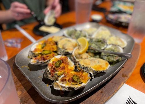 The tour proceeds to Wintzell’s Oyster House, which opened in 1938. The guests get an oyster sampler of Rockefeller, Bienville, Monterrey, and Chargrilled with a side of fried pickles. Next up is Moe’s Original BBQ for a rib and a wing served with famous Alabama White BBQ sauce. The last stop is Mo’Bay Beignet for beignets and syrup.
