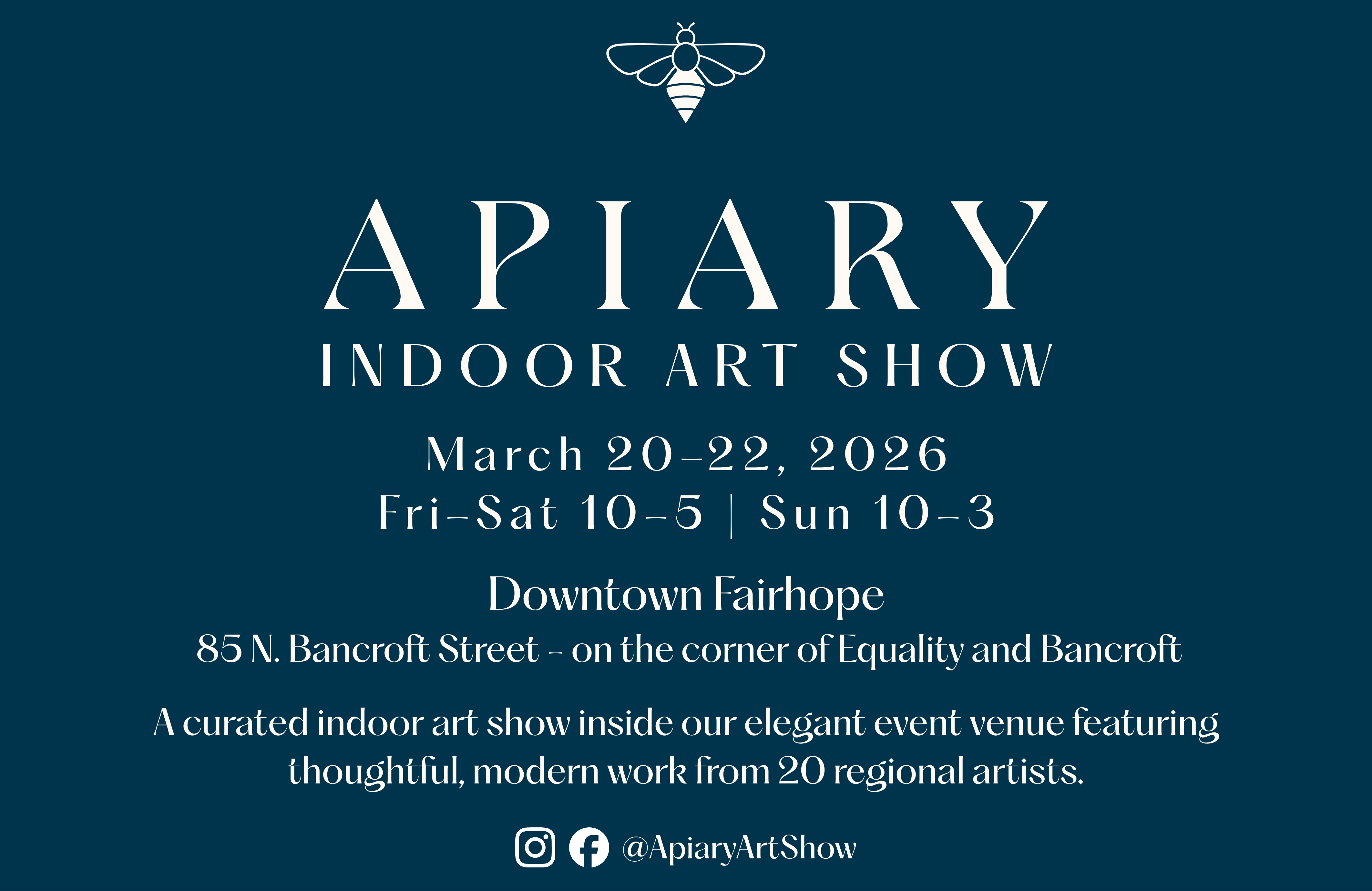 Allison Bebee and Camille Cornett have the perfect partnership of business and creativity, and together they will bring a new curated art show to Fairhope during Arts and Crafts weekend, March 20th through 22nd. Allison and her husband, Daniel, own Apiary on Bancroft Street, an event venue that is their newest endeavor, along with their businesses, Gulf Coast Events and Rentals, Belforest Pointe, and Venue 31.