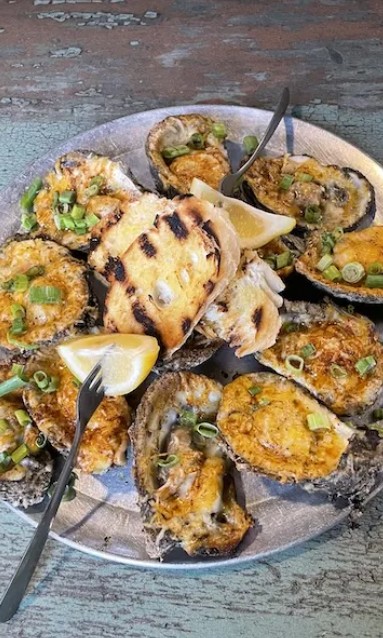 On our last visit, we ate dinner like it was our last chance, starting with oysters, both raw and char-grilled, along with Creole BBQ shrimp and fried okra. Outside of our kids, I don’t usually pick favorites, but the Pearl Butter on those char-grilled oysters was unforgettable. My son-in-law and I were practically battling forks for the last one. And let me tell you, you only need one guess to know who won that battle, and she didn’t do it humbly.