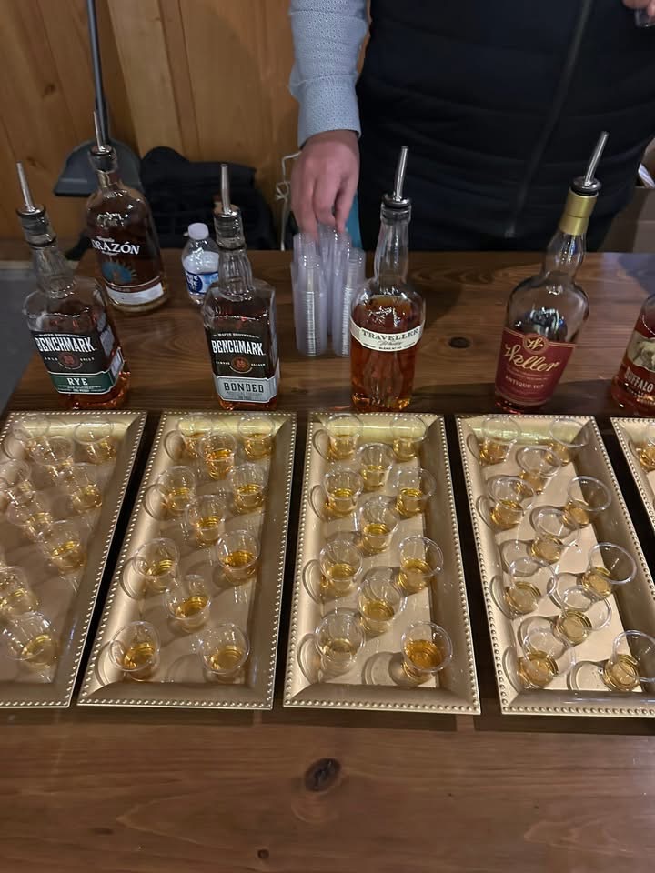 On to the bourbon…. Picture table after table with pours in shot glasses, 7 distillers with names like Clyde May’s, Judge Roy Bean Spirits, Penelope Bourbon, Nighthawks Bourbon, and more. There was also a Booze Pull… For $25, pull a bottle; guests don't know exactly what they are getting until they grab it: wine, vodka, or bourbon. Needless to say, everybody had a great time.