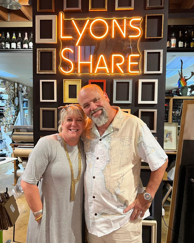 Daughter Olivia Grace Lyons was born in 1999, and three years later, deciding to have one more child, twins Ethan and Emily were born. Mike laughs, “If you want to make God laugh, just tell him your plans.” Ethan is now helping manage Lyons Share and is the heir apparent. Lyons Share has built a strong reputation for discovering new artists and is often recommended by regional art galleries as the place to have fine art framed.